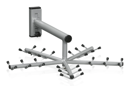 Väggmonterad klädvinda med 30 krokar, 5 armar och 2 väggfästen. Enkel att flytta mellan väggfästena och kan användas för att torka kläder både inomhus och utomhus.