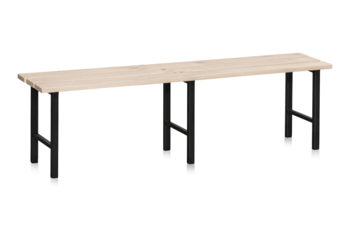 Enkel och stabil sittbänk som passar perfekt exempelvis för omklädningsrum eller kapprum. Sittbänken har en sitthöjd på 430 mm och ett sittdjup på 330 mm. Bänkbrädorna är tillverkade i klarlackerad furu och stativet är svart.