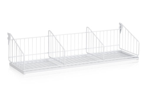 Skohylla till väggsystem. Vitlackerad plåt