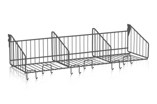 Hatthylla som passar till våra vägghängda och fristående hyllsystem. Enkel att höjdjustera. Hatthyllan har tre rymliga fack som passar bra till exempelvis vantar, mössor och väskor, samt två dubbelkrokar under varje fack.
