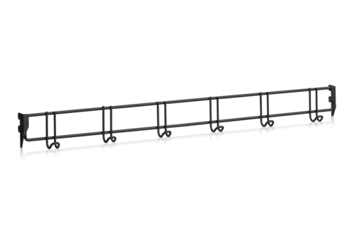 Klädkroklist som passar till våra skensystem, både vägghängda och fristående modeller. Med 6 krokar som ger platsbesparande upphängning av kläder och väskor.