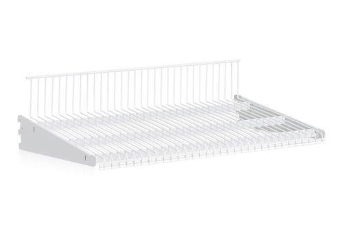 Trådhyllplan som passar till våra vägghängda och fristående hyllsystem. Kräver montering tillsammans med de inkluderade konsolerna, kan monteras både rakt och vinklat. Enkelt att höjdjustera.