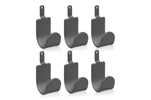 Uppsättning av 6 stycken identiska krokar som smidigt hakas fast i perforerad panel eller pelare. Krokarna är enkla att flytta runt på för att skapa en passande typ av upphängningslösning för diverse tillhörigheter som kläder, ytterkläder, väskor och dylikt.