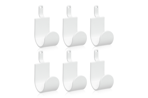 Uppsättning av 6 stycken identiska krokar som smidigt hakas fast i perforerad panel eller pelare. Krokarna är enkla att flytta runt på för att skapa en passande typ av upphängningslösning för diverse tillhörigheter som kläder, ytterkläder, väskor och dylikt.