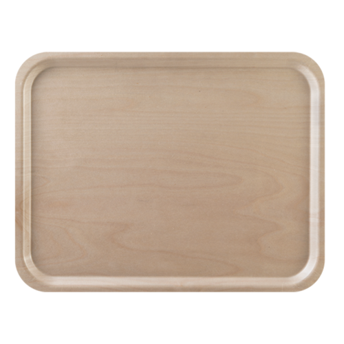 Serveringsbricka tillverkad av flera ark FSC-certifierat björkfanér. Materialet läggs samman för hand innan det pressas ihop under högt tryck och värme, vilket sedan skyddad av ett melaminbaserat ytskikt som gör ytan både slitstark och värmetålig. Brickan tål maskindisk.